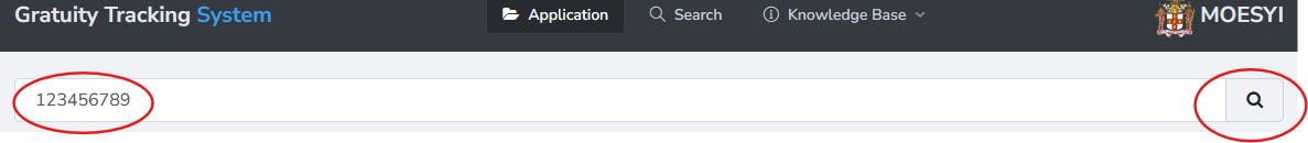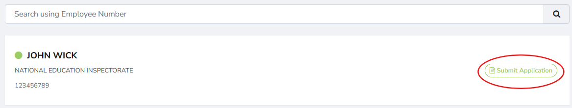 1. Select the Application tab. Enter your employee number in the field and click the Search button (i.e. button with the magnifying glass).
